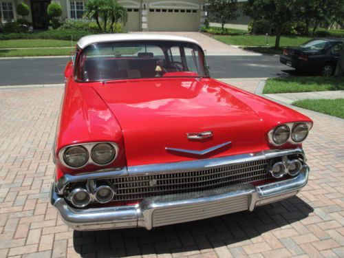 For Sale is a 1958 Chevy Biscyane - This is NOT a numbers matching car, it is a very solid Saturday night driver. - The car has a mid-1980's 350 V8 Small Block GM after market motor. - Automatic Transmission 350 turbo - Ceramic coated headers with true duel exhaust, cherry bomb mufflers. - Functional fender well dump tubes. - Edelbrock 650 CFM 4Barrel Carb / Aluminum Intake. - Interior was professional done - Non-Power Disc Brakes on front/drums on rear with dual master cylinder. - Power Steering - This is a very drivable car. It runs and sounds great. - The car is not perfect, it is a driver. - In my OPINION the car is about 90% finished. - Included in the sale is several boxes of parts, trim, stainless etc. Things that need to be addressed. Mild pitting on pot metal parts. Bumpers could be re-chromed. Cracked drivers side, vent window. I have the glass, just not installed. Chrome pieces around windshield and back window need to be installed. I have new rubbers and all the chrome pieces. Hood/Springs need to be adjusted. Terms of sale: $500 good faith non-refundable PayPal deposit is due immediately after the end of the auction. Balance is due in 3 more business days after the end of this auction in cash or bank/certified funds. If you can not or unwilling to follow this terms than please do not bid. Vehicle description represents our subjective opinion. Vehicle sold as-is, where is, with all faults it may or may not have. Buyer is responsible for shipping, however, we will assist in any way we can, just ask. Please absolutely no "zero" or "negative" feedback bidders (you must contact me prior to bidding). Non-paying bidders will be reported to eBay. This vehicle is also advertised locally. Vehicle sold as-is, where-is, with all faults it may or may not have. Seller reserves the right to end/cancel this auction at any time at sole discretion. Thank you and GOOD LUCK! |