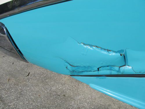 1957 Chevrolet model 4-door sedan 210 has older professional restoration and a rebuilt 283 engine. It is two tone India Ivory/Tropical turquoise color and a replaced stereo system with a cassette player. This is a great iconic running car that just should just get some tender loving care as it needs to have a little work completed on the passenger side .