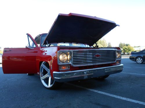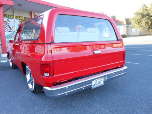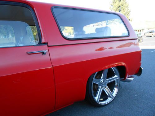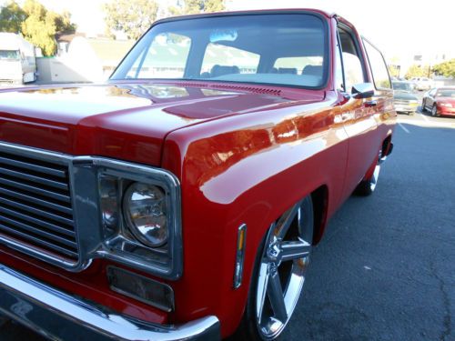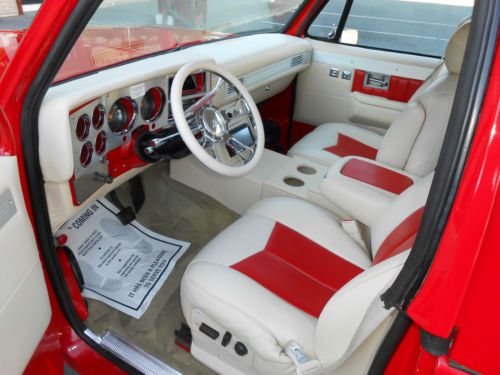 im selling my 1977 chevy blazer full convertible beautiful new viper red paint new interior new center console with touch screen in dash. it has 24 in. iroc wheels it has been lowered with belltech spindles and springs and rear flip kit with c notch runs and drives smooth.it has a rebuilt 454 chevy big block. lots of power. rebuilt th400 shifts good. the interior is from an escalade with power seats. custom done the right way seat belts work perfectly.it has a full alpine estreo system. 1 12in woofer 2 6x9s and custom kick panels made outfiberflass by hand. The viper red paint looks and shines great really straight body as you can see in the pictures. the hood doesn't align perfect which is common for this era of trucks.This is a show winner ive had my fun with it time for someone else to enjoy.it has has a viper remote start alarm.
