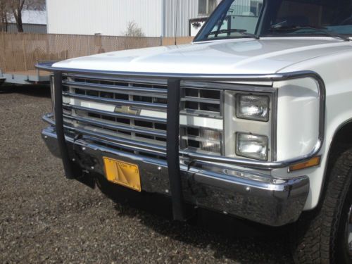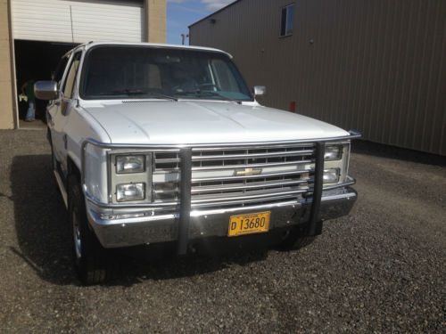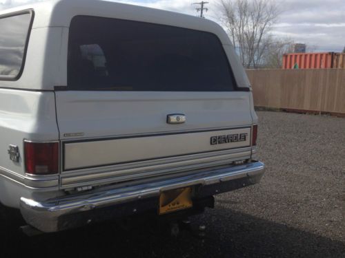 It was garaged for most of its existence as you'll see - NO Rust (slight on back hatch hinges but nothing major). And currently garaged. We live in Eastern Oregon, considered "high desert" so dry, dry climate. We also have a place in Stanislaus county, California so we can deliver. We'll be in that area so possible delivery - ask about those details. Our local mechanic could not believe how perfect and great shape the engine and all the working parts are, he said, they didn't even appeared worn at all. Original 350 engine, 114,00k original miles. We bought it with 105,368miles, took a trip to California and it drives smoother than my 2500HD Duramax!. Interior is all original, perfect condition. The air conditioner is the only thing that does not work. Heater is perfect, insta-hot, just like the old days. All original emblems. On the right side of the top, near the right side of the back window, there is some minor dent, probable running to something where the previous owners tried to bond - see detailed photo. Other that this there is just normal wear on this vehicle - no major dents! We just detailed it so it is pristine clean throughout. It has the original factory installed Cassette Player AM/FM Radio. Dash is original, perfect condition as it has been covered with the dash mat you see in the photos. Entire dash is in great shape, with original white paint, vents, knobs - all very nice. It is 4 wheel drive, with manual (aftermarket) Warn hubs, we have the original hubs if you want those. New tires with 8600mi on them - see photo showing the tread. While in detailing small spots of paint came off, so it may be an indication the hood was repainted at one point, not sure and previous owner did not know. A paint professional could tell you that - we just want to disclose all the information we know about. We added the grill guard, (another $900) due to the area we live in has lots of deer, so we wanted to protect the vehicle. We also added a second battery for extra starting power and we purchased but never installed the sliding back windows which we will include in this sale. Those of you enthusiast that know the value can appreciate, not only this rare model of vehicle in this condition but that all is original as you'll see these days - at this price. We wanted it, bought it, enjoyed it and now want to move on with our next project. Engine/ride is so smooth, quiet, truly a great vehicle. Call us with any questions. Mike 541-805-8886