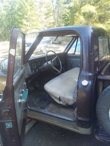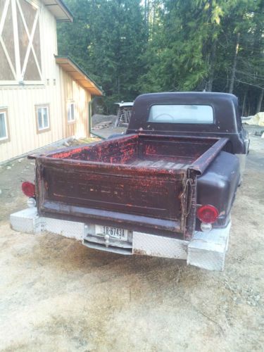 The truck needs cab corners and cab mounts and rockers, it has some rust spots on the box fenders. it boasts many farm dings and a few dents mainly on the box. The truck was taken on trade for two trophy bear hides and imported in to Canada from Montana ranch country. It is an intact running, driving truck, it shifts a stops and starts with no problem, the four wheel drive system is operational The doors are quite solid with no sag or play, the door bottoms are original with no speaker cut outs. The bottoms of the doors are relatively sound. The cab needs attention as the rockers, mounts and corners show rust. The front clip is clean and straight. The inner fenders look good as does the firewall. The truck needs attention as follows: Cab mounts, corners and rockers Windshield Speedometer temperamental Taillight wiring. Engine leaking oil believed to be coming from the valve covers. Needs Provincial safety inspection for Canadian registration. The price is very reasonable and fair to the buyer and the seller. This truck would make a great project as it has not been molested, just used as a farm truck. Remember you are bidding on a 47 year old vehicle. It is very unique however it does require a restoration or weekend tinkering to make it a daily driver. Lots of potential here without breaking the bank account. Feel free to ask further questions, good luck. |