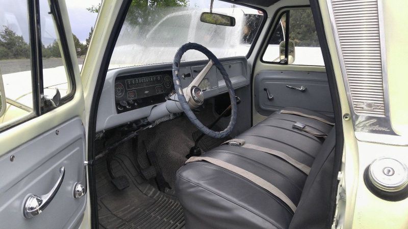 The bed also has brand new wood andstrips/bolts well finished with Minwax. Interior has been painted-soundmat installed with new carpet and seat upholstery.Cab has new window seals,door seals and new passenger glass.New left door has new latch linkage,latch and window crank.I have installed a brand new Americanautowire # 500560 harness throughout.This harness will allow you to addAC ,power windows and seats,has vss for elect. instruments and tranny control. The running gear is all original 230 6cyl. 4 spd manual.The truck runs and drives just as is and everything works,the old six will need attention eventually as it smokes a little.Probably needs a throwout bearingif the noise bothers you.My intention with this tuck was to present a "blank" canvas for you to Take it from here to complete your dream truck,add new engine suspension etc.All the grunt work is essentially done.