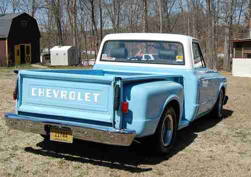 1969 C10 step side low rider, BMW bucket seats, 350 motor, Crowder camshaft 470 lift 284 dur, new rebuild 350 transmission, rally wheels 275/60/15 tires alll around, new drive shaft, new front suspension. Headers, 2 1/2 stainless steel exhaust with magna flow mufflers.