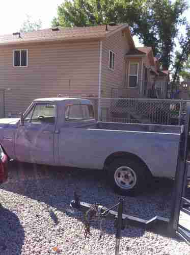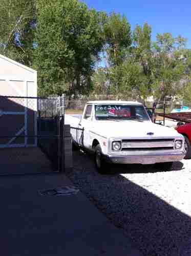 1969 Chevy 1/2 ton long bed . with v-8 motor and 4 spd transmission. Its been sitting for over 7 years. Drive train is in excellent shape. The brakes need to be bleed off, . Gas tank needs to be drained and flushed. The exhuast system in like new , needs paint work and some interior work. Will make a great project truck and MUST BE PAID IN FULL IN 48 HOURS AND MUST BE PICKED UP IN UTAH.