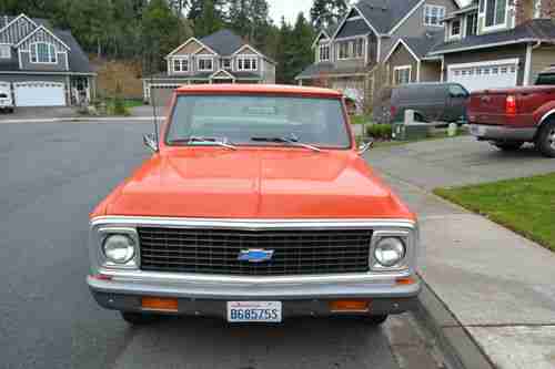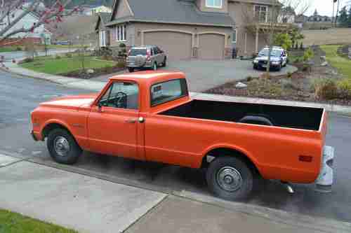 1971 Chevrolet Pick-up, truck is originally California vehicle, purchased while on temporary assignment to California three years ago from a small vehicle restoration shop. Engine has mild cam, glass pack exhaust. Two auxiliary fuel tanks (see pics). Brought back to Washington and gave to son while he finished high school, son is now in military and I have to many vehicles. Approximately 10,000 miles on vehicle since restoration. This truck is not a show vehicle but an excellent daily driver.