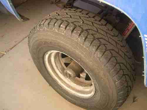 1973 Chevy 4x4 longbed, has a good running 350 engine, and 350 automatic transmission. I believe the transfer case is the original,4x4 works, manual locking hubs. I have the original driver and passenger doors, and an extra right front fender. The right front fender has a bit of rust that is why there is an extra fender for it just never put in on. The bed has two small rust spots at tire wells, tailgate works and has red marker lights on it all work. All lights, and blinkers work except the dome light in the cab, truck has a sunroof. The interior is in fair condition with a seat cover on the seat. Last fall I installed a new water pump, front windshield, ignition switch, and new 31-10.5-31" AT tires, I installed a new starter about 2 years ago, and a new front driveline, ac is all there but is not working at this time. The tires only have about 500 miles on them. I bought the truck a few years ago for hunting and camping, I have also driven the truck as a daily driver on occassion to work. I do not know the actual miles on it as the odometer is not working, gas gage,amp,oil pressure, and temparature gages all work just not the odometer. The truck is not pretty but will get you from point A to point B.
