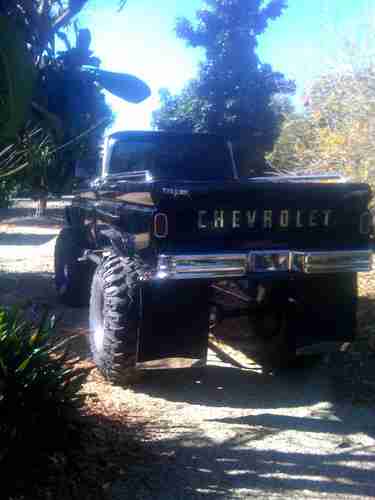Here is a rare truck - (as in 1 of 1) with a Crate Chevy 350 and an Automatic Trans - Drive train is just a few years old and with very low miles (estimating less than 5500) - engine runs/drives GREAT! Starts immediately. Currently running on the 'Street-legal' Firestone stock-look tires with 16" 8-lug Wheels and Stainless Rings. Also, this truck INCLUDES a complete set 49" IROK's Tires in Chrome rims (seen in some of the pics). It has a nice stereo, and very nice interior overall including custom CHROME door panels, ashtray, and glove box. Solid truck overall and runs very well. I just completed having the front drive shaft installed and the sterring adjust to be more uniform. Technically, very large tires generally makes any truck frame too 'high' to be officially 'street legal' and CHP approved. When I bought the truck some years ago, CHP inspected it and approved it (with the smaller tires), then also applied a copy of the frame VIN onto what is called a 'blue tag' installed within the door jam. The Truck is being sold 'as-is' and without any warranty nor guarantee whasoever.