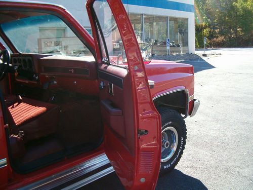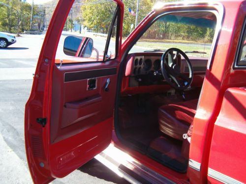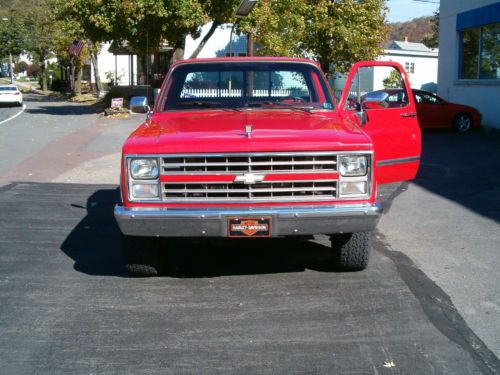 UP FOR SALE IS A BEAUTIFUL 1986 CHEVROLET SCOTSDALE 4X4 PICKUP. THIS SURVIVOR FEATURES AN AUTOMATIC TRANSMISSION, 305 CUBIC INCH V8 WITH 106,000 MILES. THIS TRUCK HAS BEEN TOTALLY RESTORED BACK TO IS ORIGINAL CONDITION. THIS TRUCK BODY HAS NO RUST, DOORS AND FENDERS ARE NEW, THE BOX WAS SENT IN FROM AN ORIGINAL TEXAS TRUCK. OIL AND FILTER WAS CHANGED YESTERDAY, ALONG WITH A NEW MUFFLER. CURRENT PA INSPECTION TIL 5/14. RESTORATION WAS DONE PROFESSIOALLY BY A PENNSYLVANIA BODY SHOP. THERE AREN'T MANY OF THESE LEFT. JUMP ON IT. |
