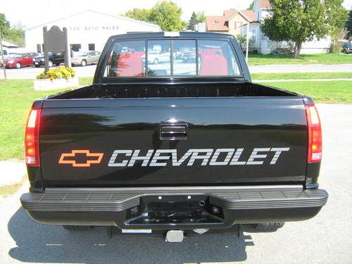 The 1990 Chevrolet 454 SS is a high performance full size pickup that mated the C1500 standard two wheel drive cab with an absolutely killer 454ci 7.4 liter, eight cylinder engine(V-8), the 3 speed automatic transmission and a 3.73 rear axle ratio helped thrust the 454 beast under the hood, the engine(90 Model) produced a maximum of 230hp, 385 foot pounds of torque.The interior comes equipped with a special plush Garnet Red cloth interior and high-back reclining sport bucket seats with a Center Console.The soft garnet red cloth seats and red interior with black trim, black steering wheel and vents makes this not only a comfortable ride but looks tough too.With the Huge 454ci Big Block there is not much room left. Unlike the 350 and smaller Engines this 454ci fills the entire engine compartment. Other items include front airdam with lights, 454 SS graphic decals on rear bed left and right, black paint with black grille, bumpers, and mirrors. Halogen Headlamps, Also standard for the 454 SS were 32 millimeter Bilstein gas-filled shock obsorbers, a 32 millimeter front stabilizer bar, 12.7 to 1 fast-ratio steering gear assembly and heavy duty jounce bumpers, great looking black or chrome lug nut caps.