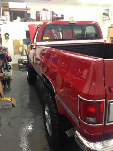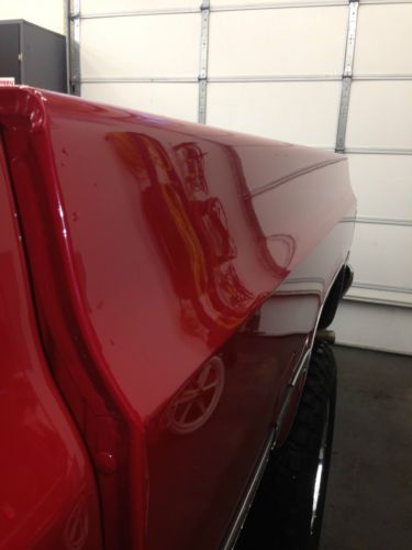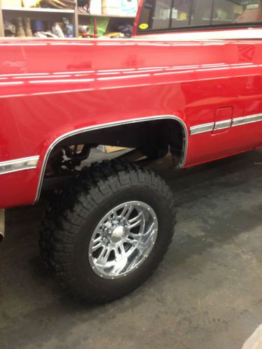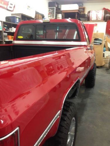 SUPER CLEAN 1987 CHEVROLET 1 TON SINGLE REAR WHEEL (SRW) 4X4 PICK UP TRUCK. LAST YEAR FOR THE FRONT STRAIGHT AXLE. FIRST YEAR FOR FUEL INJECTION. BIG BLOCK 454 FULLY REBUILT TO FACTORY SPEC LESS THAN 1000 MILES. FACTORY COLOR REPAINT LESS THE 1000 MILES. BF GOODRICH 35-12.50-18 MUD TERRAIN KM2 ON CHROME RIMS LESS THAN 1000 MILES. TWO BRAND NEW GM NOS FUEL TANKS WITH GM FUEL PUMPS REPLACED AT THE TIME OF THE ENGINE REBUILD. GREAT SHIFTING TURBO 400 TRANSMISSION. NP 205 TRANSFER CASE. DANA 60 FRONT WITH MANUAL LOCKING HUBS. CORP 14 BOLT FULL FLOATER LIMITED SLIP REAR. STOCK 3.73 GEAR RATIO. SILVERADO TRIM TRUCK WITH MANUAL HAND CRANK WINDOWS. ALL THE LIGHTS WORK, AC PUMP TURNS ON AND OFF WITH THE SWITCH BUT IT NEEDS RECHARGED. TILT WHEEL. DELAY WIPERS. TOW PACKAGE. SUPERLIFT 6" LIFT FRONT SPRINGS WITH REAR BLOCKS. NEW HEADLINER. LINE-X BEDLINER LESS THE 50 MILES. VERY CLEAN AND CORRECT OTHER THEN LIFT AND TIRE SIZE. TRUCK DRIVES GREAT. STARTS FIRST TIME EVERY TIME. STOPS, STEERS LIKE A NEW 1987 TRUCK. THIS IS A PACIFIC NORTHWEST TRUCK WHICH HAD ZERO RUST. TRUCK WAS REPAINTED DUE TO HEAVY OXIDIATION OF THE ORIGINAL RED PAINT. TRUCK LOCATED IN OLYMPIA WA 98506. HAVE TITLE IN HAND. |