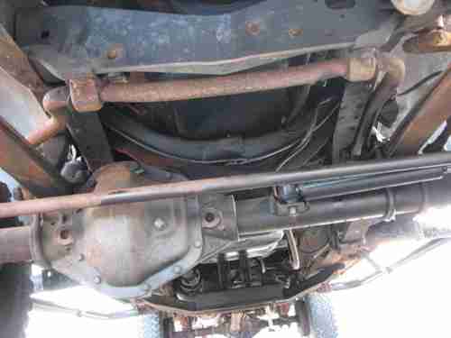 The transfer case is the Dodge version of the NP205 cast iron case gear drive. The driveshafts were cut and rebalanced and u joints were replaced at the time of swap. The axles are the original Chevy setup with a Dana 60 solid front axle and an open 14 bolt corporate rear. The ratios are matched at 3.73 and run well on the highway. I currently run 285/75/16 tires. Front will need replaced and rear have about 50%. (BFG all terrain T/A)