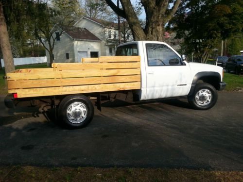 THIS IS A 1989 CHEVY 3500 4 WHEEL DRIVE PICK UP TRUCK WITH A CUSTOM HARDWOOD BED - IT HAS JUST OVER 56,000 ORIGINAL MILES ON IT - THE BED IS ON A SOLID FRAME & IS MADE FROM FURNITURE GRADE HARDWOODS WITH A MARINE CETOL FINISH & THE CAB WAS RECENTLY PAINTED - IT HAS A 454 BIG BLOCK V/8 ENGINE - - THE PLOW IS A 7'-6" FISHER W/ HYDRAULIC PUMP - THIS IS ALL TRUCK - NO RADIO OR A/C - THIS WAS A WELL MAINTAINED TRUCK -RUNS & DRIVES GREAT - EVERY THING WORKS - MECHANICLY IN EXCELLENT CONDITION - HAS NEW TIRES ,BATTERY TUNE UP ,GAS TANK MUFFLER & MORE MUST SEE FOR MORE INFO CALL BILL 914-299-5737