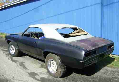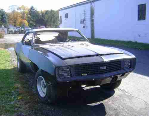 This is a 1969 Camaro Super Sport with the Rally Sport option. It has the numbers matching 396-325 HP engine and 4 sp. transmission, 12 bolt posi rear end, front disc Brakes. The car also has it's original protectoplate to document it's authenticity. The car is originally Lemans Blue with a black standard interior. A customer intended to have us restore this car for him and ran into financial problems so we purchased the car from him and are offering it for sale as a project. We had already invested $13,000.00 in parts and labor preparing the car for paint and rebuilding the Muncie M-20 4 speed transmission. New quarters and outer wheelhouses have been installed. New front sheetmetal is installed. The undercarriage is all done and painted and show ready. That is where we stopped. The engine is disassembled and will need to be rebuilt. Seat cores are included as well as a console and dash assembly. The used glass and door hardware, trim,lights,bumpers, etc. are included. This car needs final prep and paint as well as assembly, but will make a real nice and valuable investment secured by the original protectoplate! Please feel free to call us with any questions at Camaro Specialties 716-652-7086. We will be glad to assist with a transportation. We would also welcome and encourage inspection here at the shop if at all possible. We have been supplying parts and restoring 1967-1981 Camaros for 30 years!