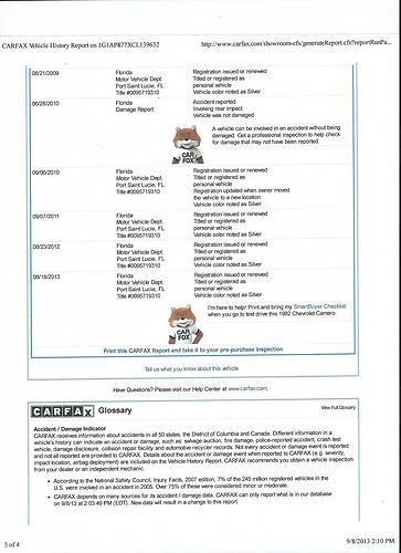 I am the second owner of this wonderful Z-28. I have owned the car for the past 7 years. It has spent most of it's life garaged in Florida. In 2010 (33049 Miles) I spent $5000 having the shocks, struts, wheel bearings repacked, belts, sway bar links, valve cover gaskets, oil pan gasket, front crank seal, tranmission service, rear pinion seal, diff. cover seal, center link & idler arm, new cat converter, Retro fit AC compress, water pump, new headliner replaced. In 2013 I replaced front rotors and brake pads. Original Goodyears also go with car if wanted. T- tops do not leak. Dash is free of cracks. Custom Z-28 floor mats made in Hollywood Cal. Dealer installed splash guards (need reinstalling)