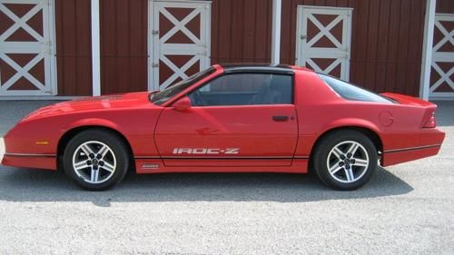 Out of my private collection comes a 1987 Chevrolet Camaro IROC-Z - 5k Miles - 100% Original - Automatic, T Tops, Full Power, 5.0 V-8 - Original Goodyear Eagle Gatorbacks - Car is in perfect condition, ready to show or drive and enjoy. Its a 10. Stored Properly and Serviced Regularly as well. Flawless History - Call 949 395 5101 with any questions - Car is located at my home in Mantua Ohio ( about 30 minutes south of downtown Cleveland ) - No disappointments - car is perfect.