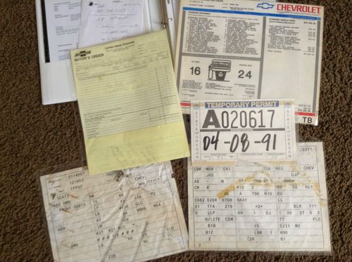 laminated window sticker, two build sheets, original delaer brochures, original manual and dealer license plate frames.