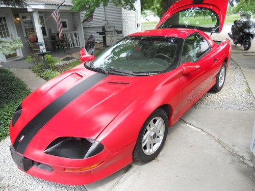 Well kept red camaro, new clutch, new pressure plate, new throw out baring, new head liner, New $800 Cooper Zeon Tires 245/50, R16, Beautiful original camaro rims., Rust free, no body filler. nice cloth interior, The paint has been touched up but looks pretty good. Has small dings but are very small.Drives well. Good brakes, Good battery, low reserve. AS Is / Pick up only
