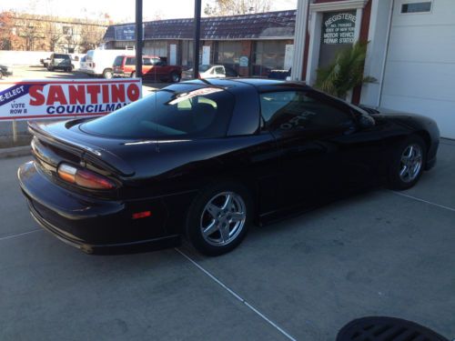 1998 Camaro V6 , 42,000 miles. T-tops. Original owner. All original paint. Couple of stone chips on the hood, slight damage to left door moulding (shown in picture), other than that, very good condition. It has ground effects package, sport package and premium CD stereo. Remote start. Interior like new. No accidents. Good brakes and tires. NO rust whatsoever. |