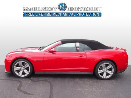 Hurry and take advantage now! Hey! Look right here! Chevrolet has done it again! They have built some fantastic vehicles and this outstanding 2013 Chevrolet Camaro is no exception! You know, you see people driving these and wonder to yourself...what do they do for a living...? Now you can be the catalyst for someone ELSE's daydream. Drive in confidence and with pride knowing some other driver is envying you and your high-octane ride. This Camaro is nicely equipped with features such as 3-Spoke Leather-Wrapped Steering Wheel, 4-Wheel Disc Brakes, 8 Speakers, ABS brakes, Air Conditioning, Alloy wheels, Analog Instrumentation, Auto-dimming door mirrors, Auto-dimming Rear-View mirror, Brake assist, Bumpers: body-color, Convertible roof lining, Delay-off headlights, Driver door bin, Driver vanity mirror, Dual front impact airbags, Dual front side impact airbags, Electric Rear-Window Defogger, Electronic Cruise Control, Electronic Stability Control, Emergency communication system, Four wheel independent suspension, Front anti-roll bar, Front Bucket Seats, Front Center Armrest, Front fog lights, Front reading lights, Front Sport Bucket Seats, Fully automatic headlights, Garage door transmitter, Glass rear window, Heads-Up Display, Head-Up Display, Heated door mirrors, Heated Driver & Front Passenger Seats, Heated front seats, High-Intensity Discharge Headlamps, High-Intensity Discharge Headlights, Illuminated entry, Leather Appointed Seating Surfaces, Leather Shift Knob, Leather-Wrapped Shift Knob, Low tire pressure warning, Occupant sensing airbag, Outside temperature display, Panic alarm, Passenger door bin, Passenger vanity mirror, Power convertible roof, Power door mirrors, Power driver seat, Power passenger seat, Power Programmable Door Locks, Power steering, Power windows, Radio data system, Rear anti-roll bar, Rear window defroster, Remote Keyless Entry, Remote keyless entry, Security system, SIRIUSXM Satellite Radio, Speed control, Speed-sensing steering, Spoiler,
