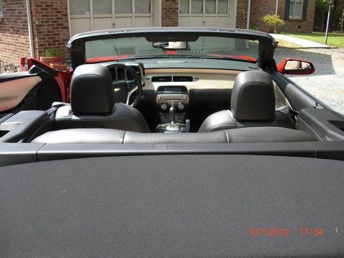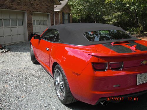 Beautiful SS RS car in like new condition. Still under factory warranty. Has all the features available for this year including a back up camera, automatic transmission with paddle shift, heated electric seats, electric top, electric windows, remote start, satellite radio, CD, available NAV, two tone interior, halo lights, etc. The wife would rather we get a Corvette, so that's why this car is for sale. The Foose wheels seen in the pictures don't go with the car. The original wheels will be put back on the car before the auction is over. I can be reached at 704/517-5160 between 9am and 9pm EST with questions. The car is for sale locally so I may sell the car before the auction is over.
