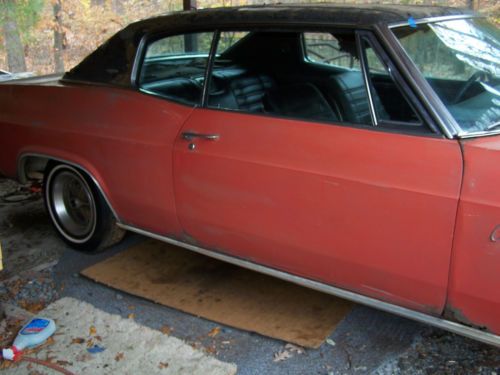 1966 chevy caprice ac,ps,pw,hard to find cruise control option,bucket seats,auto in floor with nice console,needs restoration,rust in floors/trunk etc...straight body, no engine but comes with orig powerglide transmission.comes with N.C title,sold as is,buyer assumes all shipping arrangements.feel free to ask questions, remember car needs restoration but, I believe it's worth it. thanks for looking,bobby