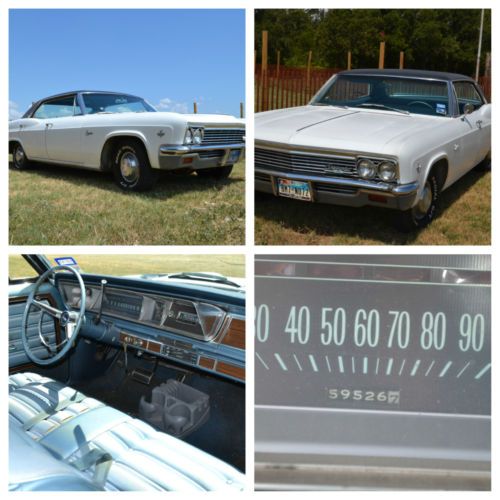 1966 CHEVY CAPRICE , GREAT SHAPE , VEHICLE HAS BEEN SITTING AND NEEDS A TUNE UP AND TO BE DRIVEN. CRANKS AND RUNS , FACTORY AIR , POWER STEERING , 9 OUT OF 10 , 327 AUTOMATIC WITH 60,000 MILES. VEHICLE IS SOLD AS IS , WHERE IS , WITH NO RETURN OR REFUND. CAR IS BEING SOLD LOCALLY AND HAVE THE RIGHT TO END AUCTION AT ANY TIME. ASK QUESTIONS , BECAUSE ONCE YOU BUY IT , IT'S YOUR'S |