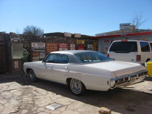 Very Clean Four Door 1969 Chevrolet Caprice. It has Brand New Interior, New Exhaust, New Suspension, Power Windows, Power Locks, Power Seats, A/C Works, New Hoses, New Bumpers. It has a 350 cu. in. 4 Barrel Motor and Automatic Transmission. Everything works on the car and it drives LIKE NEW. No Rust, Cranks up every time. This a Georgia car so it doesn't have a Title because of it's age but I do have the registration and bill of sale for the vehicle. The only defect on the car is has a slight dent underneath the rear bumper (see pictures) besides that the car is in great shape.
