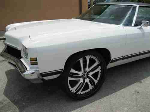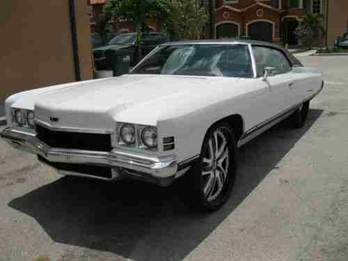 1972 Caprice Classic Glass House! Clean all the way around front to back..This car started off clean never has been a rust bucket. Owner carefully detailed this beauty to look like no other. Starting from the front, motor snatched out bored to a 402.. Edelbrock BIG cam, intake, carb, & hooker headers...runs strong sounds extremely nice with 3 inch X pipes with dynomax mufflers.. 2800 stall converter with turbo 400 trans.. Cold A/C Nice "wet" white paint NO WAVES! Caprice trim painted black to match the outfit.. Interior done clean not over the top in black Tweed & Vinly.. Pioneer head unit with surround sound.. Two 15" kickers in the trunk.. 26" custom painted Forgiato's tucked & squatted by one of the best in Miami.. NO RUB @ all.. All around car is very nice 9 out of 10 too much to list.. Car needs NOTHING owner does not want to see it go but has to relocate.. $500 immediate deposit required remainder balance due in person.. I am selling this car for a friend we will work with all "SERIOUS" buyers to make sure your purchasing experience goes smooth.. Car located in Miami, Fl. Any questions feel free to ask.. NO TRADES! SERIOUS INQURES ONLY contact Tee @ / Three 0 Five- Eight One Six - Six One Zero Four..