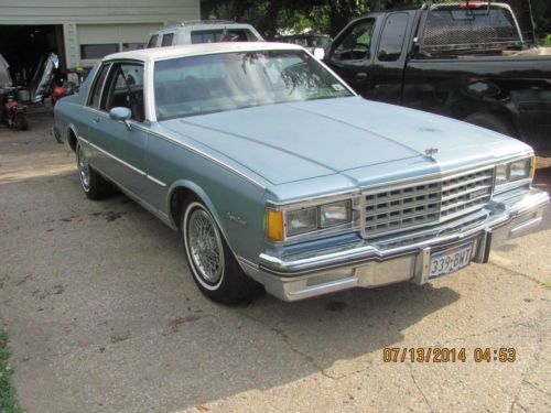 1-1981 Chevy Caprice 2dr Landau-- 67K Actual Miles-!!!,,, Older Waman Owned,,, Run's & Drive's Great-!!! The car has a 305 motor, auto. trans., a/c, p/b, p/s, delay wipers and "Landau" trim package I have a stack of receipts for work the previous owner had done over the years at Ramsey Chevrolet in Sherman , Tx. an also another shop they used when she needed something done... Wiper blades, turn signal bulbs, oil changes, etc.an Even have receipt for NEW motor at app 50,000 miles. Car needs a paint job & new 1/2 vinyl Landau top,, Dash pad & rear package tray are cracked- But the rest of the interior is nice,,, It looks like the front seat has had two inserts replaced in the back rest portions-See pics,,, The car doesn't have any major wreck or body damage- see pic's-!!! The top of the door window frames however is rusted out for some reason (NOT really any other major rust issues with the car)but I have replacement window frames that go with the car... The car's serial number is laser etched inyo Every body part- sheetmetal, glass, bumpers etc so you can tell the car hasn't been wrecked or parts replaced-!!! -see pic's,,, Car is used But is in overall good shape-!!!,,, Mileage is suppose to be actual-But I never verified-!!!,,, Would make Excellent Daily Driver or If you want one to do up your way & drive This is the car-!!!-- Save $$$- You Don't have to look for parts- It's ALL there & Original-!!! I bought the car off Ebay app. 7 years ago & had a friend drive it in from Sherman, Texas with no problems at all-- I had big plans-But not enough time & too many other projects- Thats the ONLY reason I'm selling it-!!! FLY IN & DRIVE IT HOME-!!!,,, $500.00 deposit within 24hrs thru Paypal & the balance within 5-days,,, Can store car after being paid for 4-8weeks PLEASE ASK ANY & ALL QUESTIONs BEFORE BIDDING-!!!,,, CALL 816-337-2641