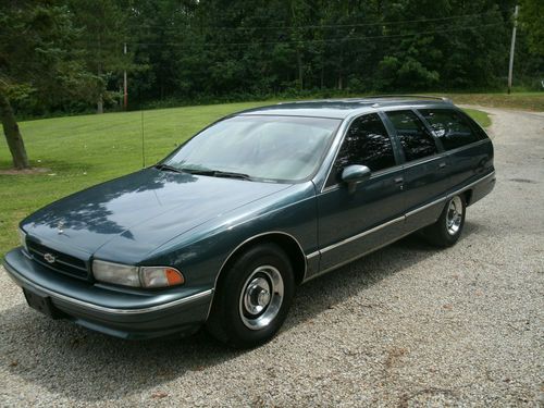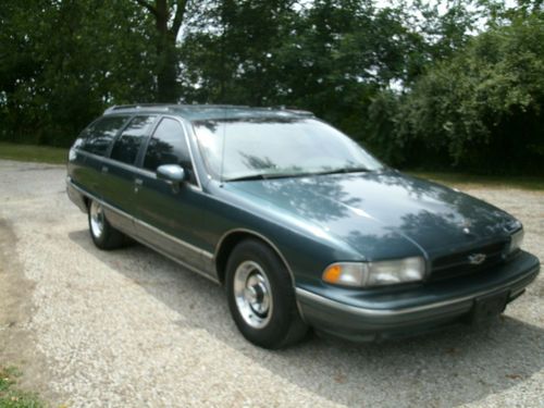 1994 CAPRICE CLASSIC ESTATE STATIONWAGON. 9 PASSENGER, 125K, THE FAMOUS LT1 MOTOR, FULL POWER, NEWER JASPER TRANSMISSION WITH AROUND 10K ON IT. VINTAGE RALLY WHEELS, WOODGRAIN DELETE. IMPALA SS FRONT GRILLE. CLOTH INTERIOR, SMALL CRACK IN DASH, CHECK PICTURE, CAR IS CLEAN, NO VISIBLE RUST. NEW FRONT BRAKES, NEW MUFFLERS, WILL NEED TAILPIPES. CAR WILL NEED FRONT WINDSHEILD REPLACED WHICH I HAVE COMING AND SHOULD BE HERE BY THE TIME AUCTION HAS ENDED. WILL BE INCLUDED WITH THE CAR. VERY NICE CAR, NOT PERFECT, HARD TO FIND. FRIEND OWED ME MONEY, GAVE ME THE CAR, WHICH I DO NOT HAVE A NEED . SELLING AS IS, NO WARRANTY. THIS IS A NO RESERVE AUCTION. IF YOU WOULD LIKE TO ASK ME A QUESTION, YOU CAN REACH ME AT 815-447-2058. RESERVE THE RIGHT TO END AUCTION EARLY, AS IT IS LISTED LOCALLY.