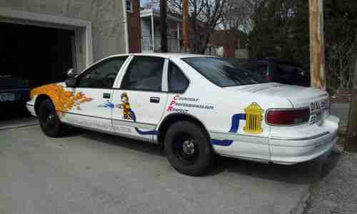 Good running, mechanically sound inspected and clean Caprice Classic police interceptor. Low miles 109,xxx new brakes, rotors, tie rod ends, alignment. Tires have about 85% tread. Car is FAST. Has the G80 posi rear. Was a fire dept car in rural area of PA, has airbrushed artwork of Smokey the Bear and flames on hood. Turns heads wherever it goes. Was not used in Police service. No rust. Unit was garaged. Interior is in decent shape, no cracks in dashboard, has rubber floor, cloth front seats, vinyl rear seats.