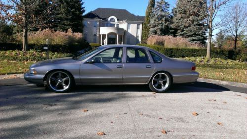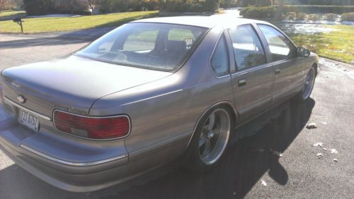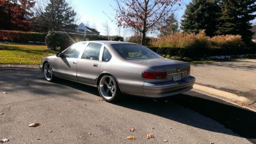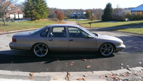 Up for sale is my very clean 1996 Chevy Caprice Classic. This car has spent the last 17 years as the snowbird express for an elderly couple. It was drove to southern Florida every October from Cincinnati and back again in March. Being that the Grandparents lived in all inclusive retirement communities the car mostly sat in the garage while they drove the golf cart. This car has the LT1 V8 with the 4 speed automatic transmission and a posi traction rear end, tow package, leather interior,sport suspension,CD player with premium sound,full size spare and more. This car is heavily optioned and unmolested with the exception of the brand new wheels,tires,shocks, and springs. I do have the original wheels,shocks and springs to return it to stock. This car is super clean and very well cared for. The car has less than 30,000 miles and runs and drives like new. The factory stainless steel dual exhaust has not even fully changed color yet. No rust, beautiful interior no issues at all.