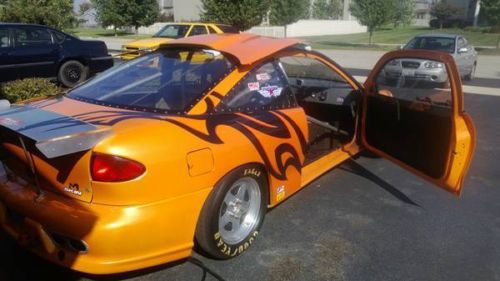 looking to sell my 97 cavalier drag car. I am getting out of racing. just don't have the time to devote anymore with kids. I have been the only owner of the vehicle and title is clear. please note this is a race vehicle and is not street legal. below is a list of mods that have been done. Engine 2.4 quad 4 dohc mild port and polish with all ports matched with heavy duty valve springs and retainers from chevy performance. unorthodox underdrive pulley, custom 1 off alumunium 4 into 1 intake manifold with equal length runners 50 mm bored throttle body high output remote ignition coil with msd wires Hahn racecraft 1 off racing turbo system with air to air intercooler and custom piping and custom downpipe. (no muffler) stand alone fmu regulator with Aeroquip hoses and a n fittings modified venom performance fuel rail with 24 lbs accell injectors MSD dis 2 ignition controller APEX I air fuel controller jaz 1 gallon fuel cell with accell fuel pump and inline filter solid urethane motor mounts custom overflow can civic radiator / core support removed and stubbed (weight reduction) McLeod spring loaded racing clutch phantom grip limited slip locker interior: autometer gauges (tach,boost,water,egt) custom alumunium dash sparco racing seat and 4 pt restraints sparco racing wheel all inner door, rear inner quarters and supports removed for weight reduction as well as spare tire well ( covered with alumunium sheet) shortened shifter battery box relocated to passenger floor (weight distribution) 6pt roll cage exterior: house of colors sunset orange pearl all lexan windows chassis engineering wing rear air diffuser custom 1 off flared fenders and front bumper lightened, has a lightened fiberglass ss style ram air hood not seen in pic. wheels,tires, and suspension: bogart drag lites 13" fronts and 15" rears. has mh racemaster wrinkle wal 25" slicks up front and goodyear skinnies on the back ground control adjustable coil overs trans has a phantom grip limited slip locker all synthetic fluids thruout. this car has never been crashed and I have been the only owner since I bought the car new in late 97. it runs mid 11s consistently and would easily run 10's with the pistons and rods in place. I may have left out a thing or two but u can call with questions. 630 849-6551 with thesale I will include a new set of eagle connecting rods and je pistons. i am negotiable but please no low ballers. I have more than 15000 invested into the car. If you look around you cant find anything turn key and ready to go for less. car is race ready. no need to tweak anything just jump in and go. I have more pics that I would be willing to send anyone who is interested. |