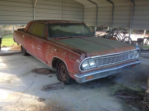1964 Chevy Chevelle SS. 283, Powerglide automatic. For complete restoration or parts. Needs all new panels, floors, etc, good frame and engine. Ran when parked 8 years ago. This is a true SS car and it's all there. This is a no reserve auction, and I'm starting the bidding way, way below what she's worth. Local pick up only, I will help in loading as much as I can, but it is the buyers responsiblity. I will accept paypal, cash, or certified check, but car does not move until funds clear. No current title, but I do have the title from 8 years ago when I bought it.
