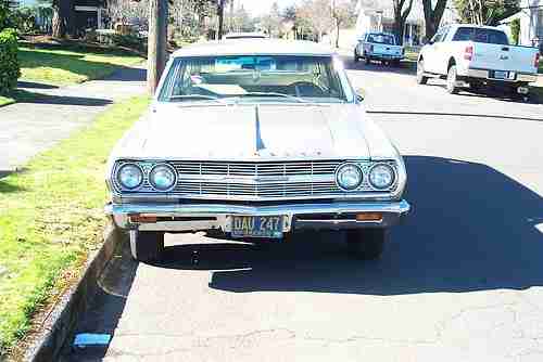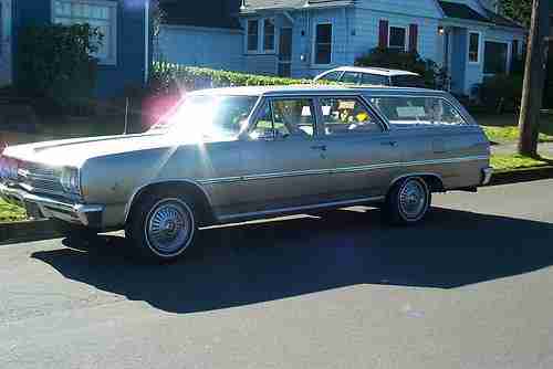 1965 Chevrolet Malibu , mid-size station wagon( lighter than the Impala, but heavier than the Nova) The first car Chevrolet designed for surfing... low roof line to ground to accomodate racking boards. All metal dash painted in high gloss 1984 Cadillac gold. Rebuilt front-end with 1 1/4 " anti sway bar and the heaviest guage springs available. Rebuilt rear suspension with F-24 suspension package with rear anti-sway bar. The Chevelle Malibu was the top of the line model in 1965. 1984 Cadillac Gold. rebuild Corvette 327 with 49k miles; HEI Ignition, motor rebuilt with Case Hardened Exhaust Valves. Holley Street Dominator 700. Powerglide transmission rebuilt two years ago. 1967 Impala am/fm radio. New Chromed plastic Arm Rests.1967 New Impala interior in two shades of gold( fabric-vinyl) the front seat has been covered in clear plastic New silver Daytona Loop carpeting..New Tires Factory wheel covers, on SS wheels, New red-black-clear-silver inserts in wheel covers. New Brakes. Have a new, in box, chromed instrument cluster. New Radiator.New Interior radiator-heater core.New Brake Master Cylinder. Chromed Alternator.Cowel tag reads: Trim 766 F. Acc. A49 36962. Paint VV. I have owned this since 1998. No rust. Very fast. Selling as fiance says to downsize my collection. Buyer will arrange and pay for transport or can drive away after money order or Pay Pal clears. Sale as is ; no returns ~please contact me if you have a low or no feedback score. If you do not your bid will be removed. Sorry had enough dreamers with no money..