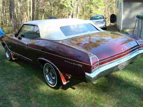 1969 chevy chevelle convertible,has a 1968 327 engine runs very nice,headers,dual exhaust,holley dual feed carb,automatic,ps,pb,interior is in good shape nice buckets with console ,rear seat has some viynle cracks on very top.white top is in good condition it is power and it works well.paint is tired needs a repaint has rust bubbles on fender bottom and in front of rear tire as seen in pics.floors and trunk pan have been patched up over the years .the frame has been patched in several spots and needs more patches(a frame would be better).this is a car that you could patch up underneath and drive for the summer and restore next winter,or tear it apart and do a frame off restoration either way it is a desirable car.it does run and drive I took it for a ride today.i have a registration and a bill of sale no title!!!!!! I want to sell this car this week so make a offer.207-206-2167
