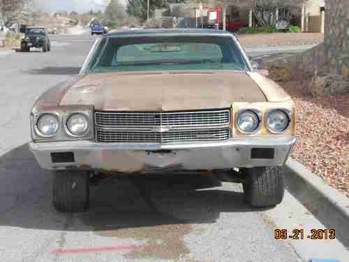 Up for sale is this 1970 chevelle. This is a nice project car that is pretty complete. It started life as a 307 automatic car. The body does have a little rust on the drivers side quarter panel, pass side door and fender as well as the trunk. The interior is all there. They did roll the lip on part of the quarter panel to fit the bigger tires in it. It does have a nice stance. I was told the rear end does have a locker in it. It needs to be redone. This would make an excellent candidate for a hot rod or SS clone. The at did come with factory air aswell. I do have a clear new mexico title for it. It is sold asis whereis. Please look at the pictures and ask any questions. Thank you for looking.