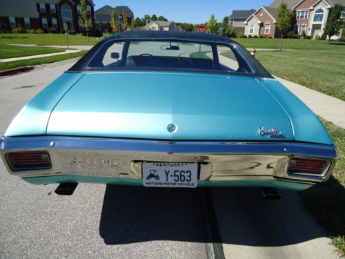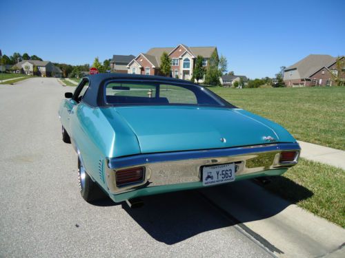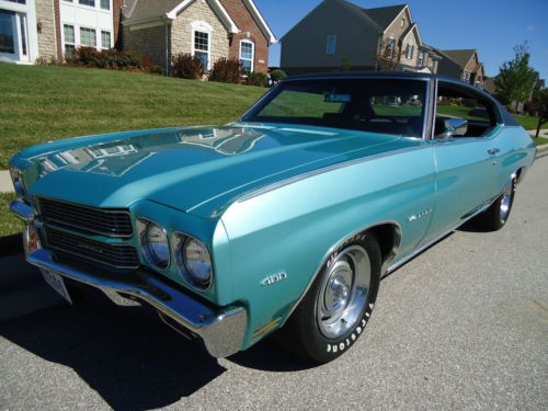 Up for sale is my 1970 Chevrolet Chevelle Big Block. As you will see from the pictures, who ever wins this auction is getting a beautiful car that they can jump in and enjoy it for many years to come. I bought this car and it was completely original with a 307 engine / single exhaust / hub caps etc. As you can see, this is not the same car and a ton of work has been put in this chevelle over the past year. The car has 63,000 original miles and gets compliments every time I take her out. It took a lot for me to not keep it original, but nothing beats a 70 big block chevelle in my opinion. We dressed it up to look like an original 400 chevelle (GM made 1700 in 1970) Engine - The engine is a big block 402 out of a low mileage 71 Monte Carlo and is a true GM big block of that era. Here's the details: has a small Lunati Voodoo hydraulic flat tappet cam and lifters, Cloyes double roller timing chain, Mellin high volume oil pump, new valve seals, comp cam valve springs, retainers and 10 degree locks, 3/8 chromemolly push rods, Erson full roller rocker arms, stock pistons, been re-ringed and new bearings about 5,000 miles on the bottom end. It has a 1966 427CI 390 HP factory holley intake, New 650 Holley double pump carb, new holley big end 110 gph mechanical fuel pump, electronic ignition (no points), new heavy duty water pump, Felpro one piece oil pan gasket. The intake, timing cover, oil pan, valve covers, thermostat housing, distributor hold down have all been powder coated. The rest of the engine has been painted with Eastwood's ceramic paint. Exhaust manifolds have been blasted and painted with Eastwood's manifold grey coating. All bolts have been changed to stainless steel. The engine runs great and stays cool even in the hot summers days. All 8 cylinders have 150 of compression and the engine runs at about 160-170 degrees all day. New engine mounts and frame brackets. All the brackets are new, the power steering pump is new, al hoses are new and are GM. A lot of time and money have gone into making this engine run and look great. Transmission - All rebuilt - TH400 auto. I have receipts for all the work that was performed and the transmission has a warranty through July 2015. Exhaust - All brand new 2.5 inch flowmaster 40 series exhaust. All custom welded with H-pipe and original style exhaust tips (new) Please feel free to call me with any questions you may have. I have a binder of receipts for this car and know the amount of time and effort we put into it. Bid with confidence - 100% Ebay Feedback Rating Thanks and Good Luck Ken 609-412-0912 Car is located in Union, KY which is 20 mins south of Cincinnati, Ohio. I am also willing to pick anyone up at the Kentucky / Cincinnati airport if anyone wants to fly in and drive it home.