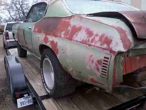 70 Chevelle body, drum brakes, 10 bolt rear end, factory A/C, power steering, car was lightly hit in the right rear, comes with 70 Chevelle 2dr rear clip for most of the rear body repair, extra right front fender with headlight extention, drivers quarter panel is very usable, lower rear quarter rusty, drivers door is great, drivers fender needs patch on the bottom, passenger-side quarter can be used off the rear clip, pass door is good also, flat hood is ok, trunk floor is very clean, any rust repair can be used off the 70 rear clip, no bumpers, no motor, no trans, no trunk lid, doors shut good, good glass, cracked windshield, little rust on rocker skins but the rear clip has perfect rockers and floors and taillight panel, easy fixer and comes with a State of Missouri salvage title, any questions call Brian 501-779-5277, (Note- was hit above the frame)
