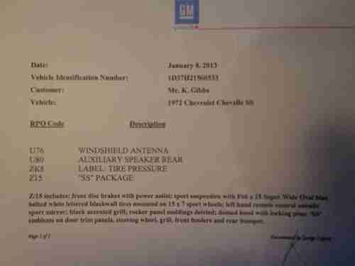 72 Super Sport With Original Motor! Documented True Ss on 2040-cars