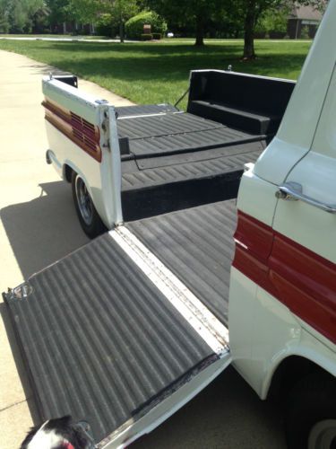 exhaust leaks and the heater hoses and stuff look new. Wheels, Brakes, Suspension: Crager wheels have been added in recent years and are in excellent condition. They wear near new full tread Michelin radials. I have not taken the brakes apart to look but the truck stops quickly and in a straight line even without a hand on the steering wheel. Brake lines look new and pedal is high. Springs have been cut a quarter coil lowering the truck slightly but maintaining it’s full one ton carrying capacity. All of the suspension is tight and the Rampside drives fantastic. An aftermarket front sway bar has been installed. Transmission/Clutch: