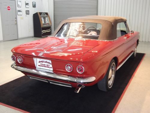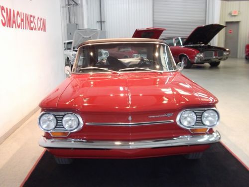 This is a 1963 Corvair Monza Spyder convertible that has been completely restored. It is a rust free Southern car with a gorgeous body and undercarriage.
