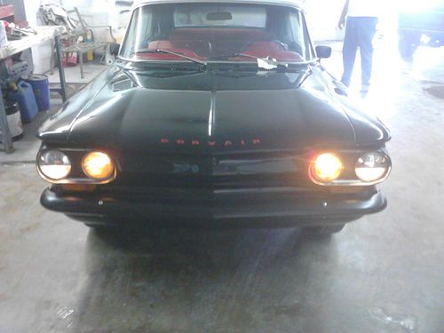 Up for sale is my version of a Corvair spider, which we lovingly call the black widow. It's a 1964 Corvair with less than 83,000 original miles that runs and drives excellent! She has been completely restored in the past 6 months. The car was originally yellow with a black top and interior witch you can see has been changed. All new interior, carpet, top and more! New paint that has been clear coated color sanded and buffed. She had no rust with the exception of the two front floor pans which were replaced with aftermarket pans that were purchased on eBay and professionally installed. All lights, markers, turn signals and gauges work properly. The car has no leaks or mechanical issues. The car will have a low reserve. Please if your score is less than 10 call me before bidding. I don't want to waste your time or mine. This is truly a nice and clean classic Corvair that turns heads wherever she goes! Call Steve at (214) 200-5724. Please no text or emails since I'm not always at the computer.