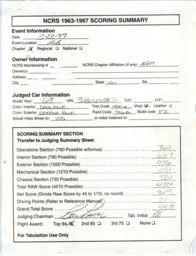 1963 Corvette Roadster for Sale In 1963, Chevrolet produced 21,513 of the first year “Stingray” Corvettes. Out of those produced, 10919 were convertibles (roadster) or about 50.2%. The rare engine in 1963 was the much-desired Fuel Injected, 360 HP, 327 C.I. About 12% of the total cars produced had this engine. Second was the base 327 with 250 HP. About 18% of the total cars produced had this engine. The remaining 70% of Corvettes had either a 300 HP or 340 HP 327 C.I. engines. Out of all the Corvettes produced in 1963, only 3475 were painted Daytona Blue or about 8%. When you consider the Daytona Blue paint with the rare 250 HP engine in the convertible model, only about 1.5% (or around 300) of the total Corvettes had this combination. Even less with dark blue interior. I am offering this rare, original 250 HP, 4 speed with posi, Daytona Blue Corvette to qualified buyers. This Corvette has received numerous NCRS Top Flight Awards and was the first Corvette from Colorado to win the NCRS Founders Award. Many say, “numbers matching”. But that does not always mean “original”. This Corvette is both. There is so much of the car that is original, it is too lengthy to mention. For example, besides the engine, it still has the original inspection marks on the tie rod ends. The original daily build number is still visible on the fiberglass. It has original T3 headlights and the list goes on. Every part of the car is in working order, including the original clock. I encourage buyers to contact me for additional information. Some say for a car to be a “survivor”, it must have 50% of the original parts. If this is true, this Corvette is a truly a survivor. I have seen cars of this quality sell for more than $80,000 without buyers commision. So, if you know Corvettes or if your looking for a great investment that can be driven and enjoyed, this very rare, un-restored original car may be just what you are looking for. The car will only be shown by appointment. Only a Certified check or cash will be accepted. A non-refundable certified check or cash deposit of $1500 will be required. The buyer will pay all taxes, shipping and any others fees associated with this transaction. |
