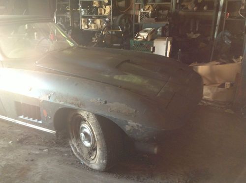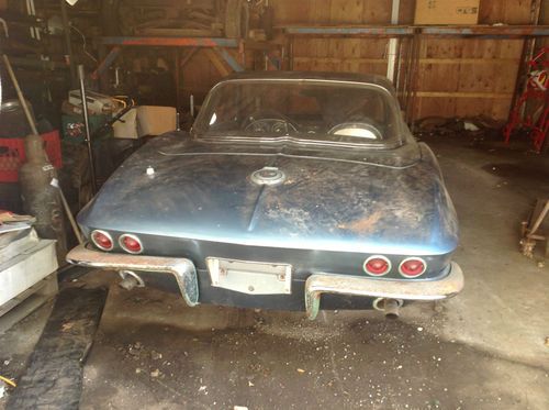 For sale 1964 Chevrolet corvette convertible and a 1966 Chevrolet corvette coupe rear clip chassis and lots of parts. The 1964 corvette was my dads it has been sitting for 30 years in a garage. I was just finally able to pull it out. The car is a 1964 rear clip with a 1967 front nose and interior. The motor is 327 from what I remember my dad telling me. The car is locked up from sitting. We had to drag it out. It was sitting on a cement floor so moisture has taken its toll. It needs to be done from top to bottom. The chassis is rusty. I do have a clean title for the car. Also as part of the auction is a 1966 Corvette coupe with a good chassis that has been sitting up off the ground for about 20 to 25 years. There are a lot of parts that is included in the sale. I have coupe doors,convertible doors, rear decklid, window frame, windshield, radiator, door panels, wire harness,door handles and a 1963 hood gauge clusters and dash. I do not have a title for the 66 only a bill of sale. I would like to sell the two as a package deal.