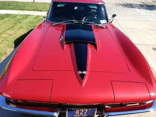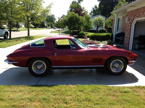 This is a beautiful example of the true American sports car- the coveted and much heralded 1967 C2 / Mid-year Big Block 427 Corvette coupe. The last model year of this amazing and most desired Engine & body style. It has the original, numbers matching 427 /400 HP engine that it was born with. This is a body-off restoration,(a 5 year project)correct Marlboro Maroon paint. with black vinyl interior, this car is Restored to the Highest Level of NCRS Rigid Guide Lines and is absolutely STUNNING! This is an original and correct, born-with matching numbers L68 427/400 HP, 4-speed close-ratio Muncie M-21 transmission This Corvette is a very high option model with power windows,power steering,power brakes, telescopic steering wheel,and speed warning indicator on the speedometer.This car has had a very recent frame off restoration, and was done to the exacting standards of the NCRS every nut and bolt has the correct stampings ,every component and every fastener is correct and has the proper date codes .This car has never scored below 95.6 % and scored better at Bloomington Gold- -I have all the scoring sheets (every Judge marked the scoring sheets with a smiley face and stated what a pleasure it was to judge this car ) also have all the photos and receipts of the complete restoration which will come with the purchase . The panel fit and finish is awesome. The restorer spent HUNDREDS of hours getting everything just perfect. T he interior is as new with all top quality Al Knoch materials, the engine and transmission and also the rear differential have been completely rebuilt as well as the 3x2 carbs to NCRS specifications. The car has new brakes with stainless sleeves and new brake lines, all new suspension components,and new fuel lines, there is no way to list it all on this forum ..... There is no evidence of the body or frame ever sustaining any damage all bonding strips appear to be original and damage free . All gauges work exactly as they should including the clock with it's original movement. Running lights, headlights, high beams, turn signals, brake lights, speed sensor on the speedo, all work perfectly. As the photos show, the underside is as clean as the exterior. Approximately 43 miles on the car since completion of the restoration. I have always trailered this car to these events and only miles that were put on after the restoration were for testing (43 miles) , so if you are serious call me - as most people will tell you its more economical to buy a car thats done then one that needs restoration -I have had the enjoyment of finishing this car and its time to move on - looking for some waterfront property and need the funds - is the only reason Im selling . I guarantee who ever gets this car will not be disappointed! This Rare True American Classic is being offered for sale please dont bid unless you intend to purchase I am being completely honest when I tell you I have over $180,000 into this restoration - but as my friends always tell me "It aint cheap to be cool- but its not cool to be cheap" no expense was spared as you will see when you look at this car (side note)-- car comes with the correct rally wheels and Bias Ply white walls only(in Pics)- red lines do not belong to me- only on the car for storage purposes Optional equipment includes: TOP FLIGHT AWARDS -CHAPTER- REGIONAL-AND BLOOMONGTON GOLD ALL AWARDS RECEIVED IN 2012/2013 This is an exceptionally restored - great driving, solid running 1967 Coupe that is really a joy to own and would be perfect for any collector . I encourage you or a certified NCRS Judge to make an appointment to come see it or to discuss any details I may have left out. Feel free to call me,( Rich )anytime before 9 pm New York time at 716-574-4487 or Charlie 716-864-5619 The car has clean paperwork ready to be transferred to the buyer for title/registration in your state.