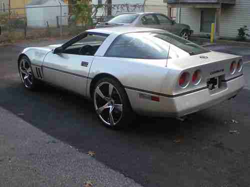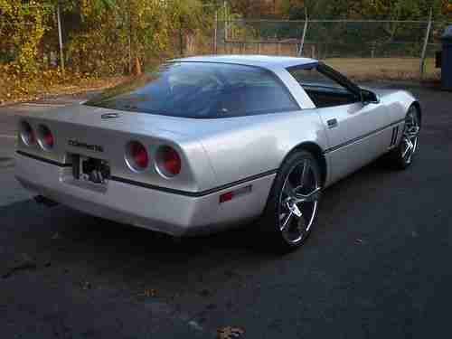 1985 CHEVY CORVETTE 68K MILES 4SPD 4+3 TRANSMISION . VEHICLE RUNS & DRIVES GOOD.HAS SOME HESITATION WHEN COLD STARTED IN MORNING, CLEARS UP AFTER WARM UP. MAY NEED TUNEUP.EXTERIOR OF CAR HAS SOME NICKS . FRONT AND REAR BUMPER HAVE SOME FADING,AS SHOWN IN PICS . INTERIOR IS IN GOOD CONDITION , WITH SOME FADING ON REAR HATCH CARPET . ALL ELECTRONICS ARE IN WORKING ORDER. VEHICLE HAS 20 INCH STAGERD WHEELS WITH GOOD TREAD ON THEM . I ALSO HAVE ORIGINAL WHEELS ,IF NOT INTERESTED IN CROME WHEELS. ORIGINAL WHEELS WILL NEED TIRES . IF ANY ??JOE 401 265 9420 PLEASE RESCUE ME , I NEED A GOOD HOME ;-)