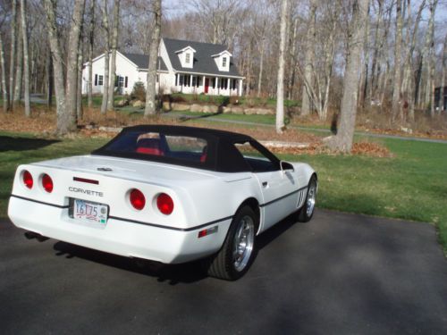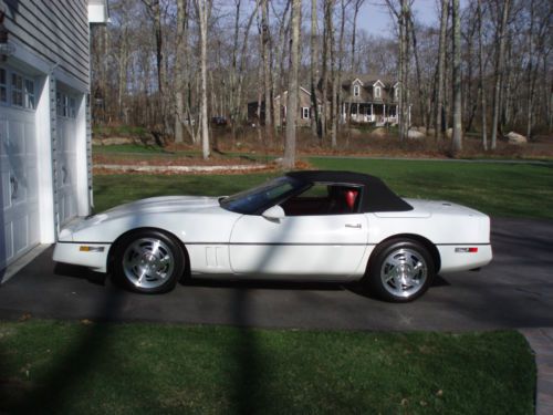 Item is being relisted due to a non paying bidder. I have added many more pictures to show how beautiful this car is. 1990 Corvette Convertible with only 24,634 original miles. This car is in next to new condition. Equipped with a rare 6 speed transmission, dual power seats, oil cooler option, Bose Gold sound system, and electronic climate control. Also has new Continental tires. Perfect carfax report. This car gets much attention at cruise nights and shows. You will not find a nicer one anywhere. Comes with original window sticker, manuals and dealer brochure etc. Original canvas top is in perfect condition. You will love this car as it looks and runs perfect. Car looks even better than the pictures show. My reserve is very reasonable considering the condition. |