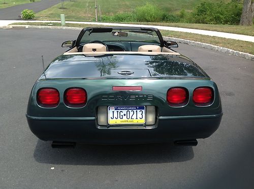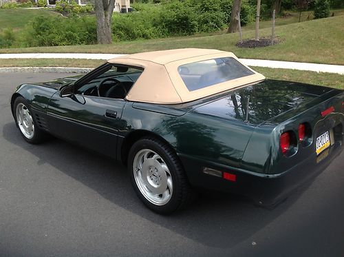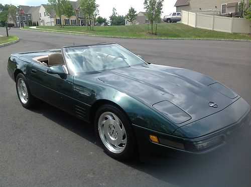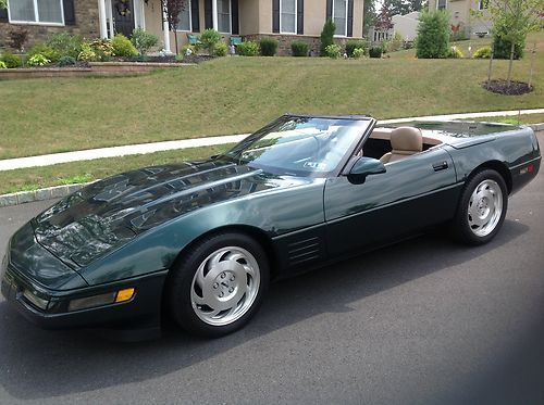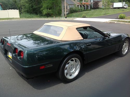 1993 Corvette 40th Anniversary year convertible with only 31,800 miles since new and has always been garage kept and pampered. Beautiful polo green metallic exterior with tan leather interior and cloth top. Car gets complements wherever it goes, especially the great color combination. The car runs and drives extremely well. These cars are appreciating collector vehicles that are extremely reliable and can be driven anywhere with peace of mind. Total 1993 convertible production was 5,692, of which 2,189 (coupe/convertibles) were finished in polo green metallic. Wheels are in perfect condition, no curb rash. Tires are in good condition with plenty of tread left. Original cloth top is in very good condition. Everything works and functions as it should including ice cold a/c, both power seats and power windows. Aftermarket Sony CD player, but I have the original Bose/GM radio that goes with the car.