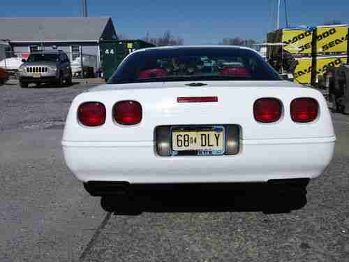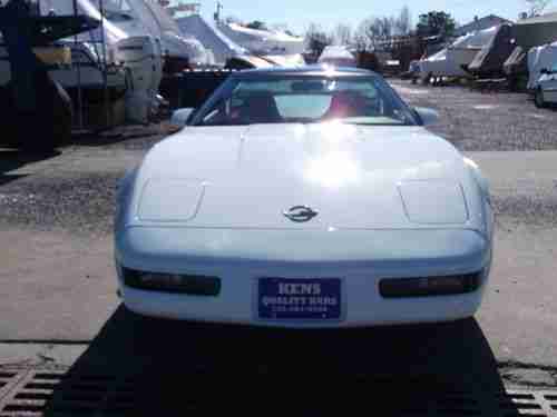 This is a GARAGED 1994 Chevrolet Corvette--this car was bought from a 70 year old gentleman that was the second owner of this PRESTINE corvette--This car was kept under a cover in his garage--in his ten years of ownership he barely put a THOUSAND miles a year on this corvette--The red leather and carpeting are fade free and in PERFECT condition---AS you can see from my pictures this car is a RARE FIND---this is a car that any Corvette enthusiast would love to own. Has three sets of keys, the original corvette mats, both the smoked glass roof and the white fiberglass roof. The smoked glass roof is in perfect condition with no spider cracks at all. This car is not on my car lot it is at my home in the garage. The 350 v8 purrs like a kitten. This corvette is tight and has no RATTLES. Any questions feel free to call me or if you would like to set up an apt to see and drive this beauty call me Kenny 732-742-3790. Thank you for taking the time to check out my auction.